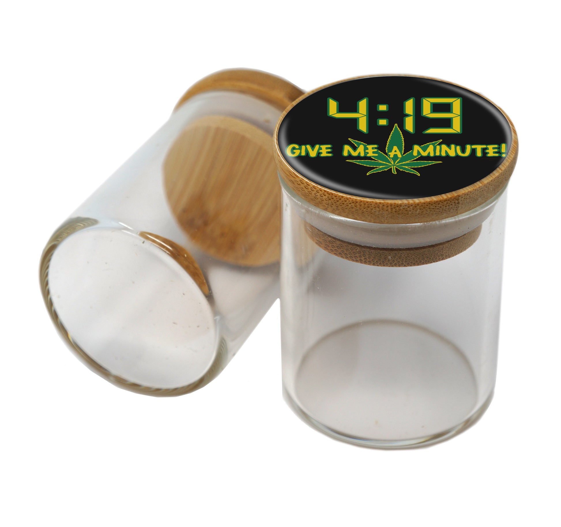 Bamboo Lid Glass Jar Container With Design #BS-002