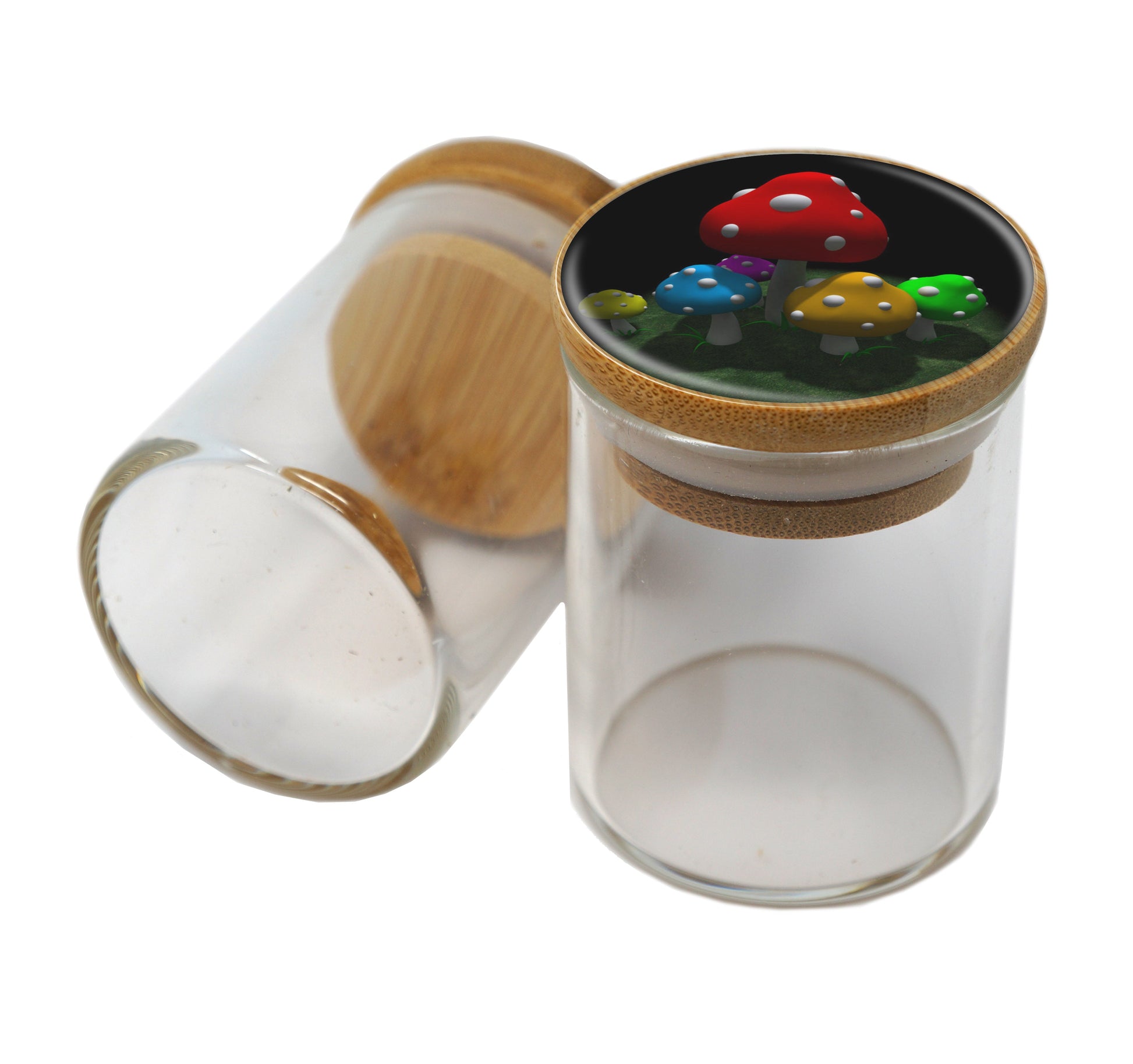 Bamboo Lid Glass Jar Container With Design #BS-007