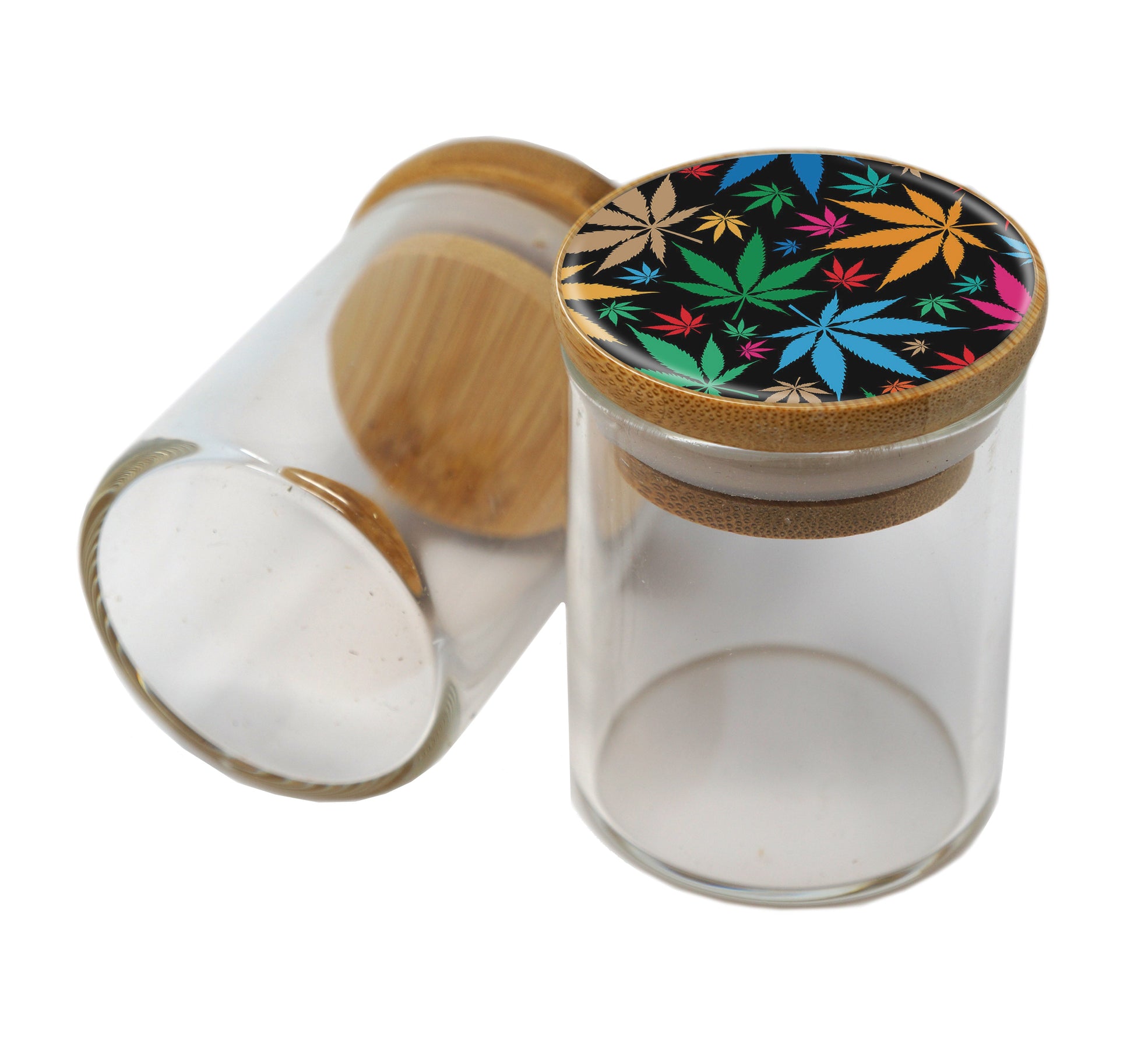 Bamboo Lid Glass Jar Container With Design #BS-013