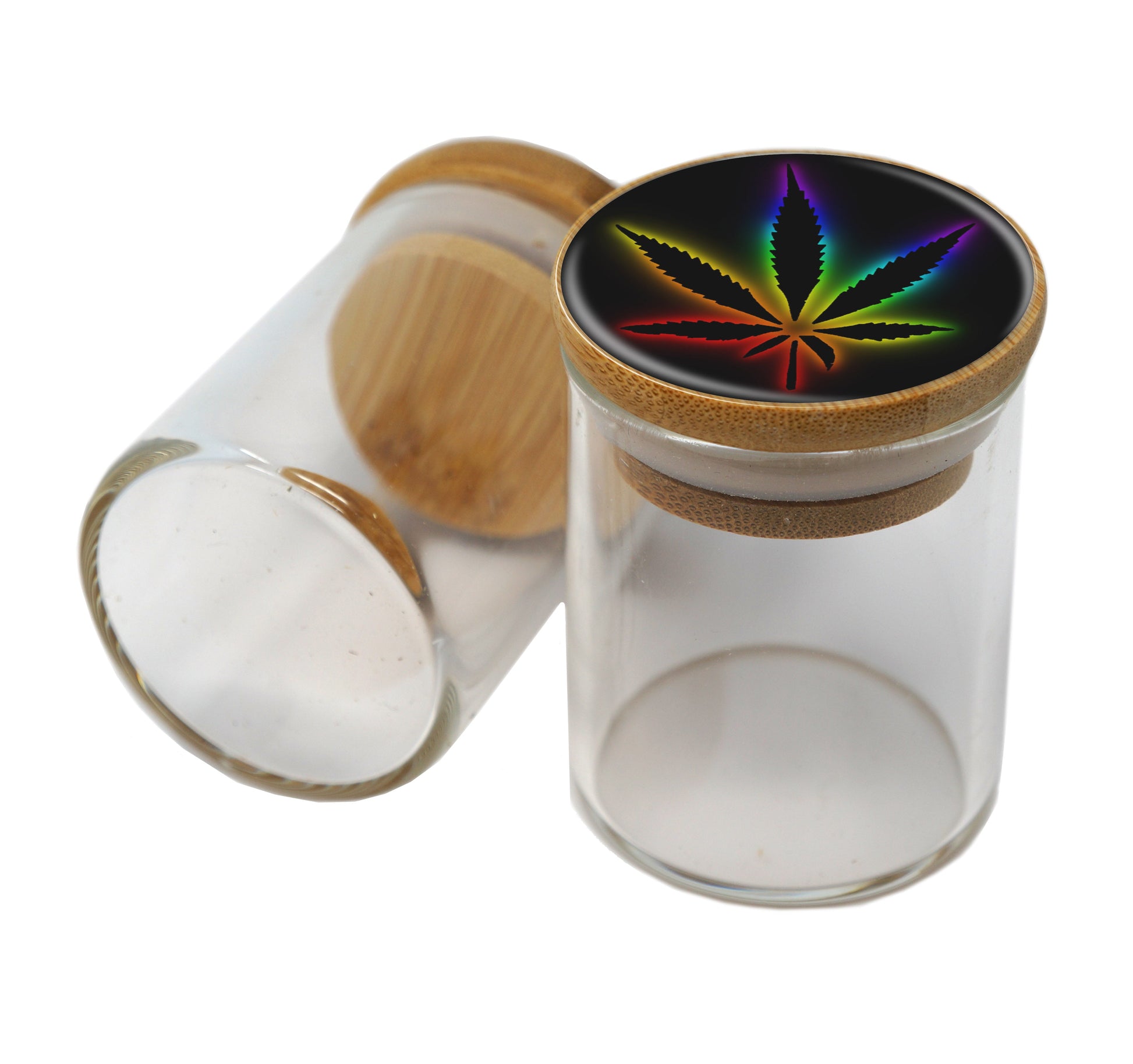 Bamboo Lid Glass Jar Container With Design #BS-016