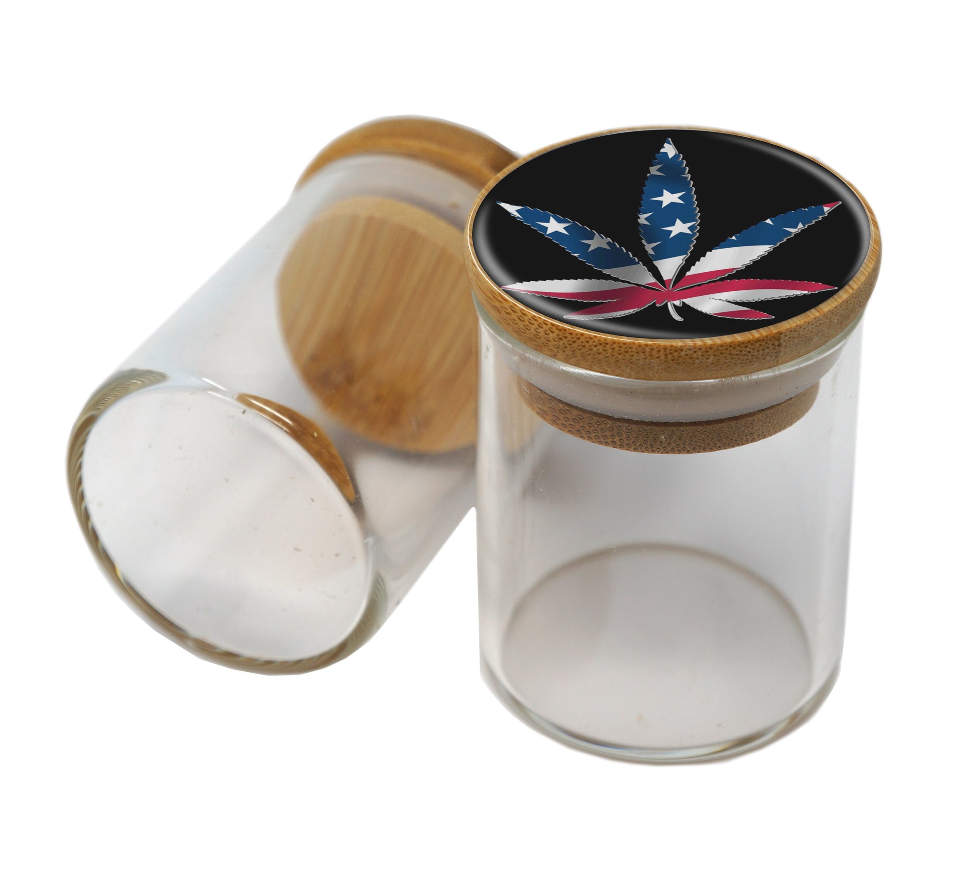 Bamboo Lid Glass Jar Container With Design #BS-017