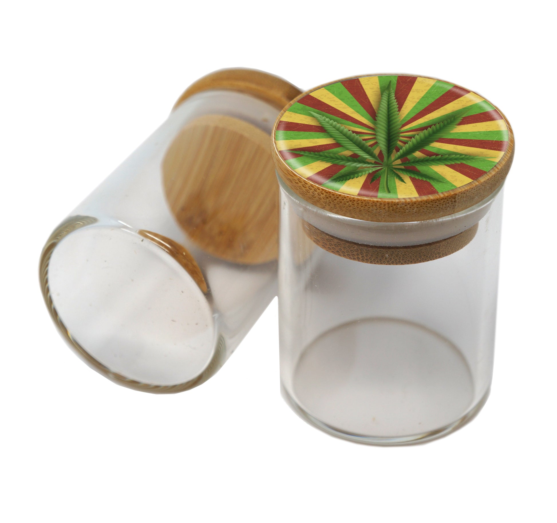 Bamboo Lid Glass Jar Container With Design #BS-019