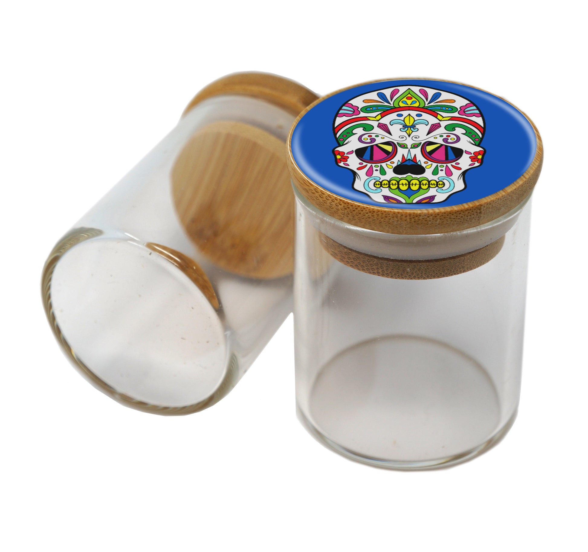 Bamboo Lid Glass Jar Container With Design #BS-031