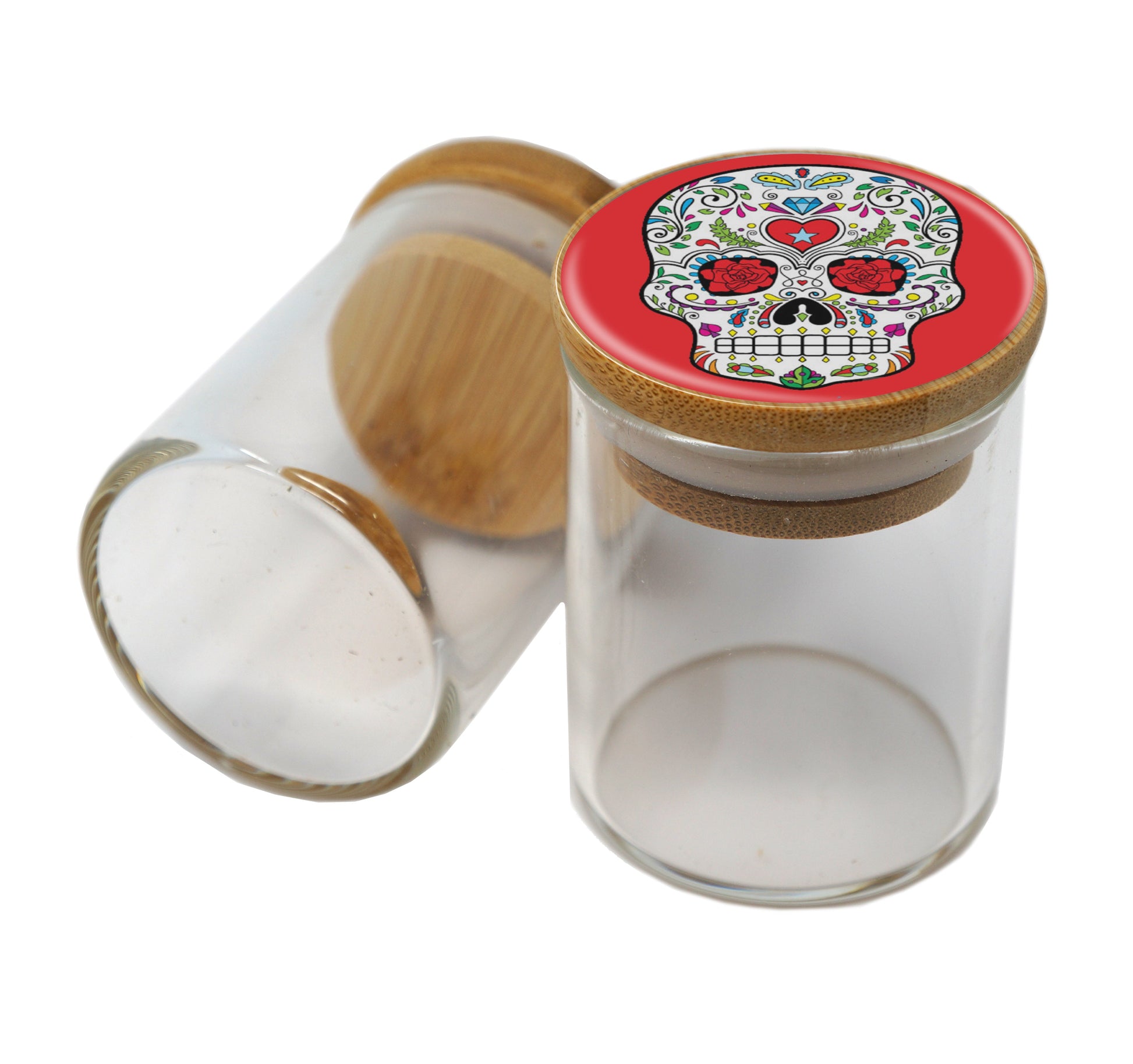 Bamboo Lid Glass Jar Container With Design #BS-032