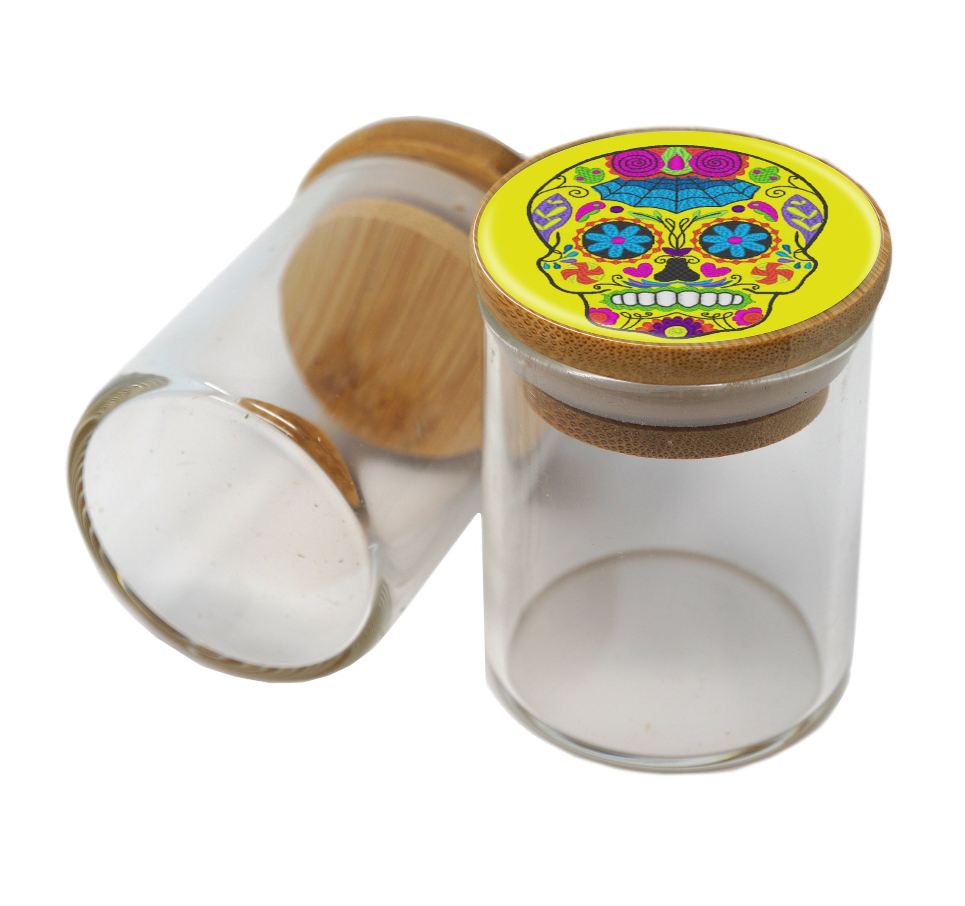 Bamboo Lid Glass Jar Container With Design #BS-036