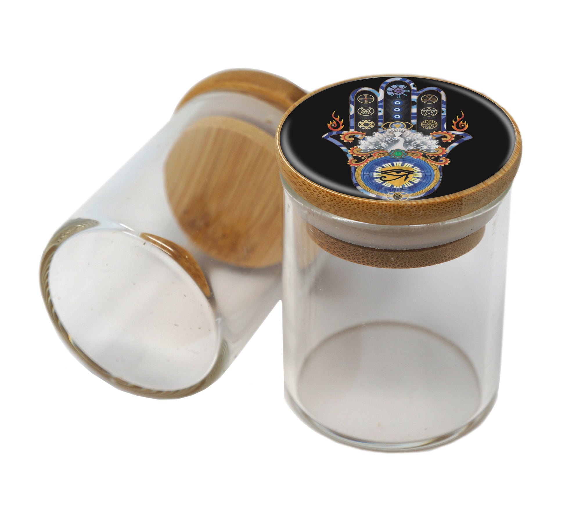 Bamboo Lid Glass Jar Container With Design #BS-038