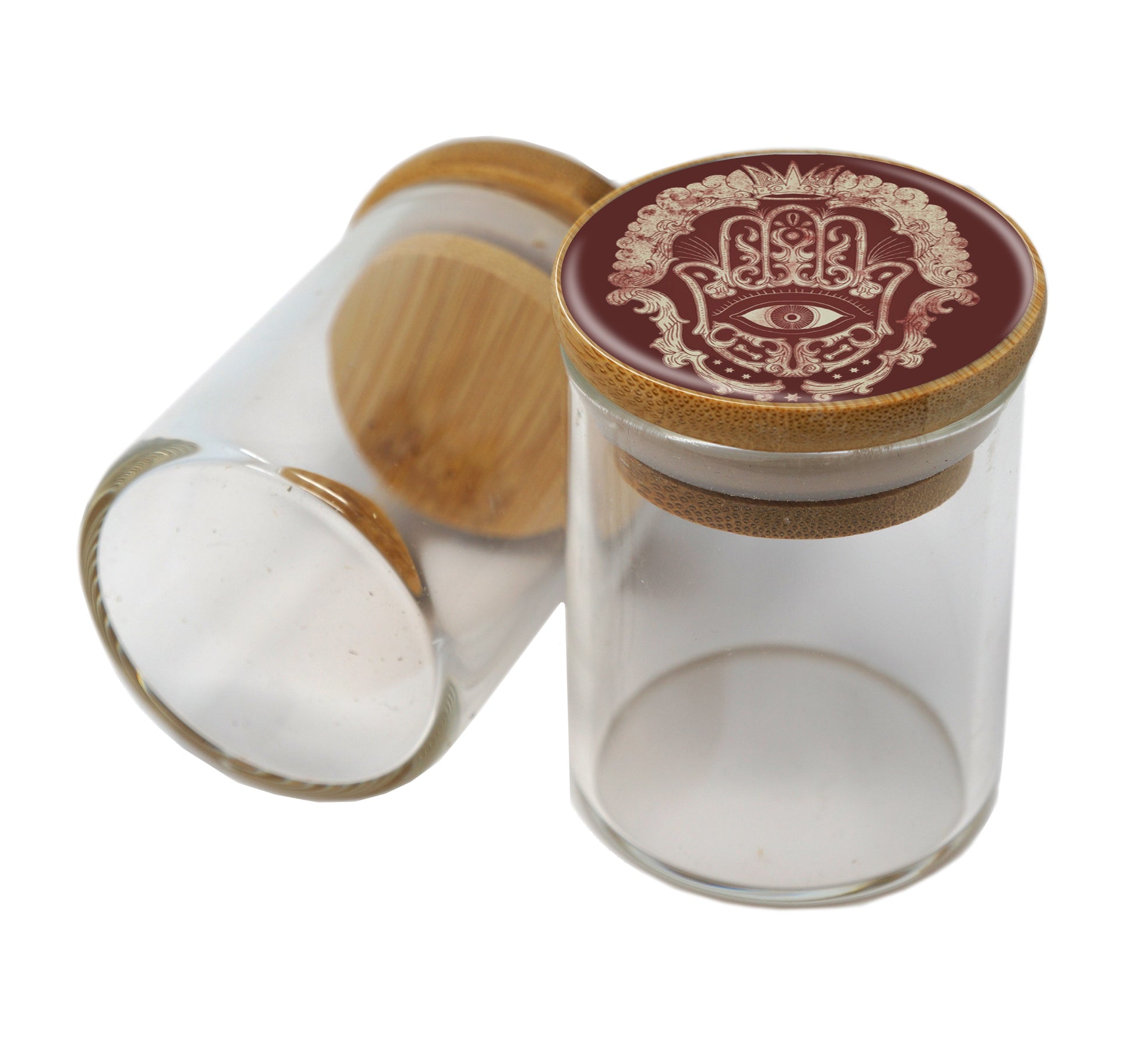 Bamboo Lid Glass Jar Container With Design #BS-040