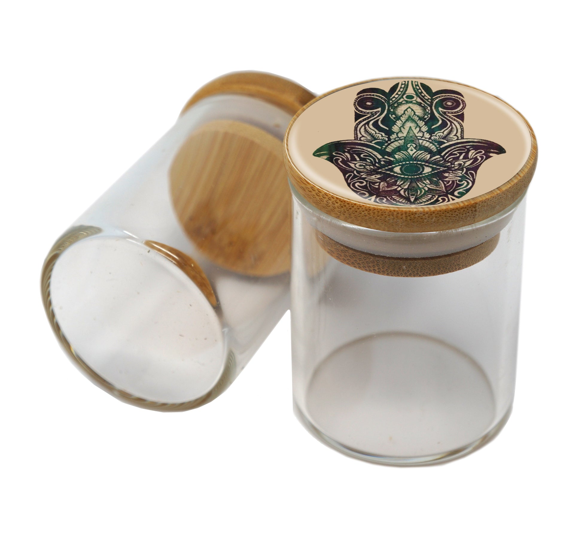 Bamboo Lid Glass Jar Container With Design #BS-041