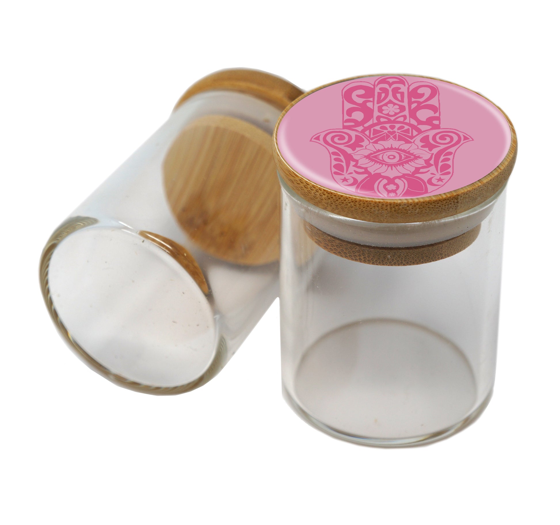 Bamboo Lid Glass Jar Container With Design #BS-042