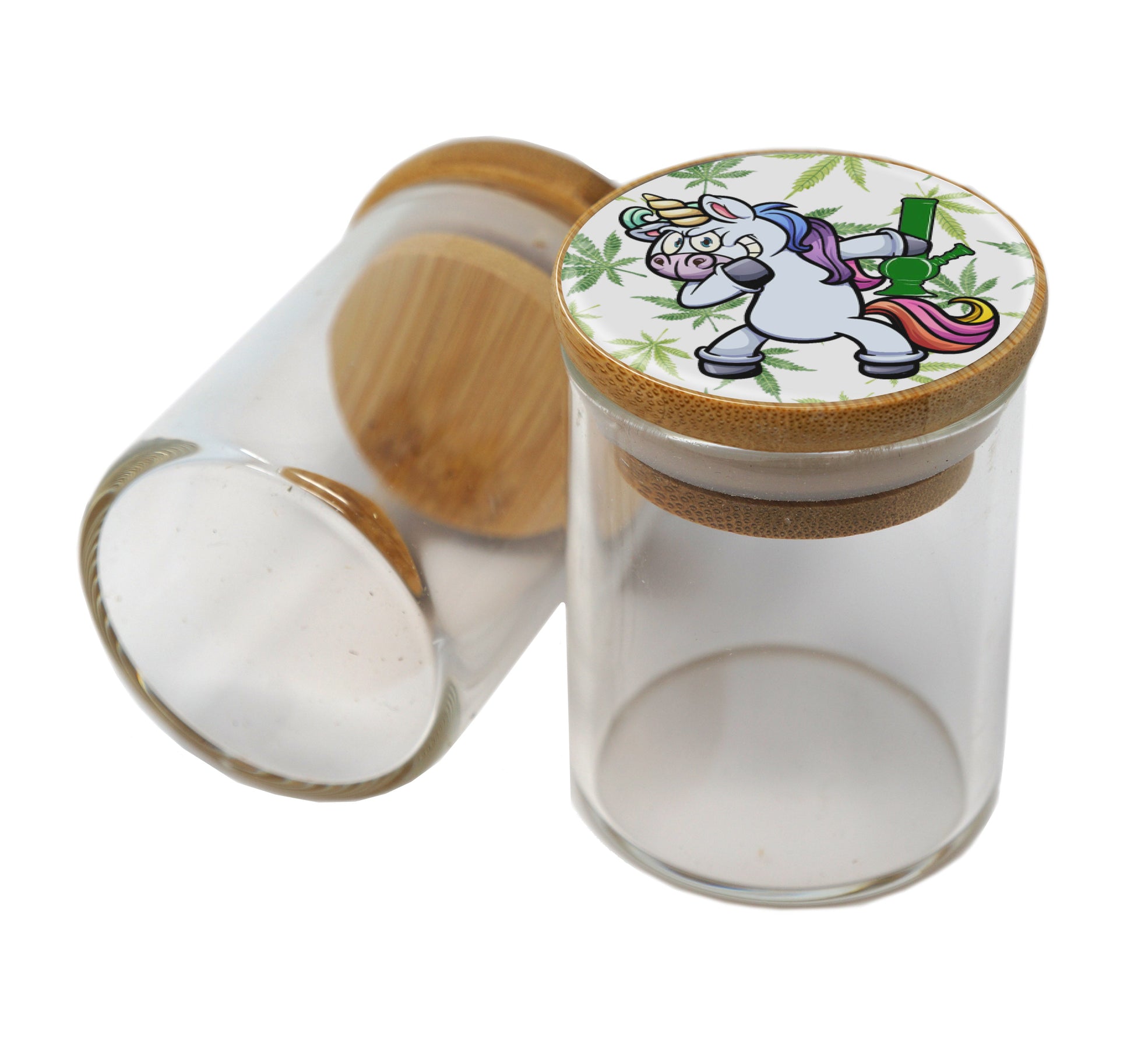 Bamboo Lid Glass Jar Container With Design #BS-043