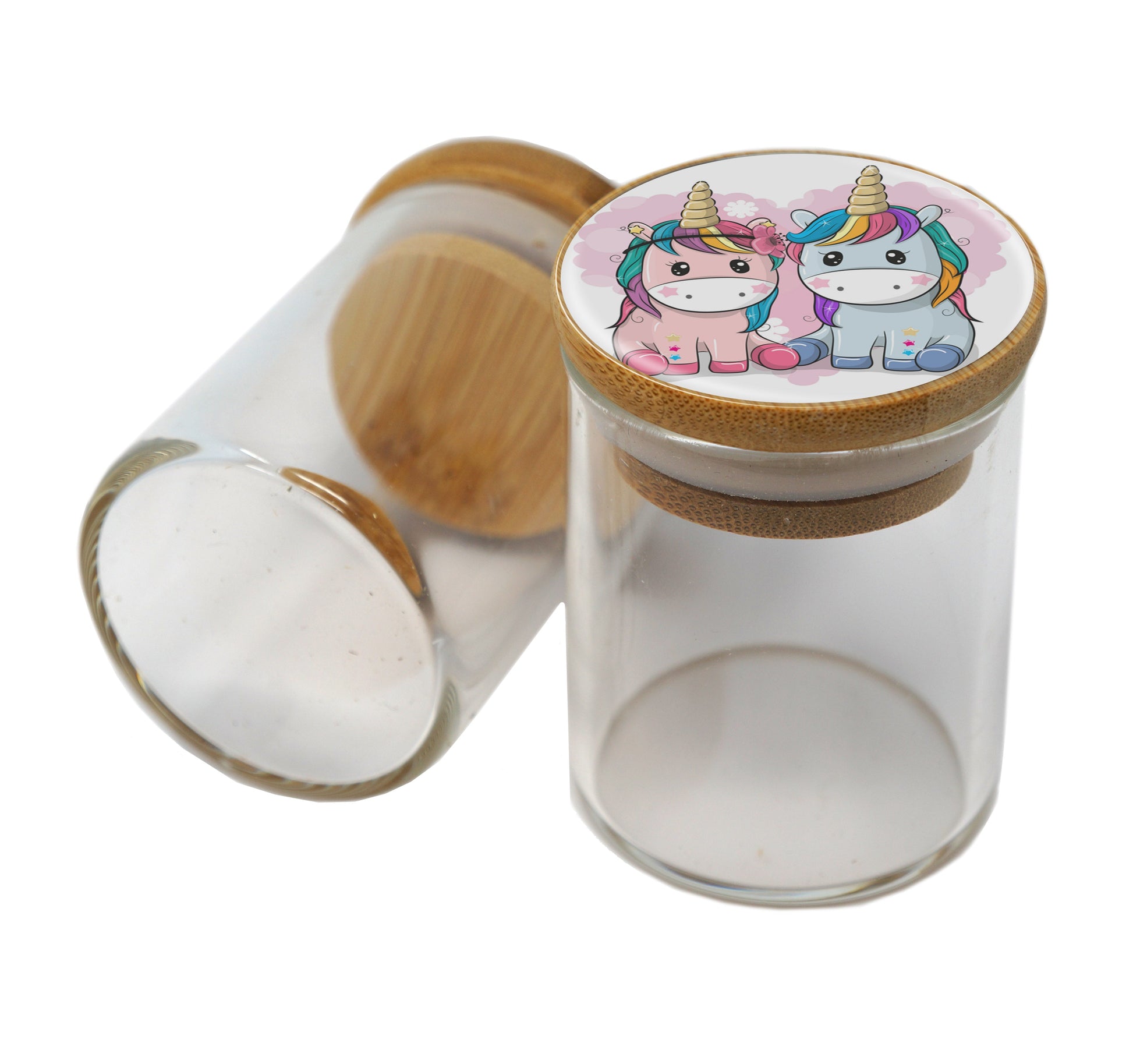 Bamboo Lid Glass Jar Container With Design #BS-046
