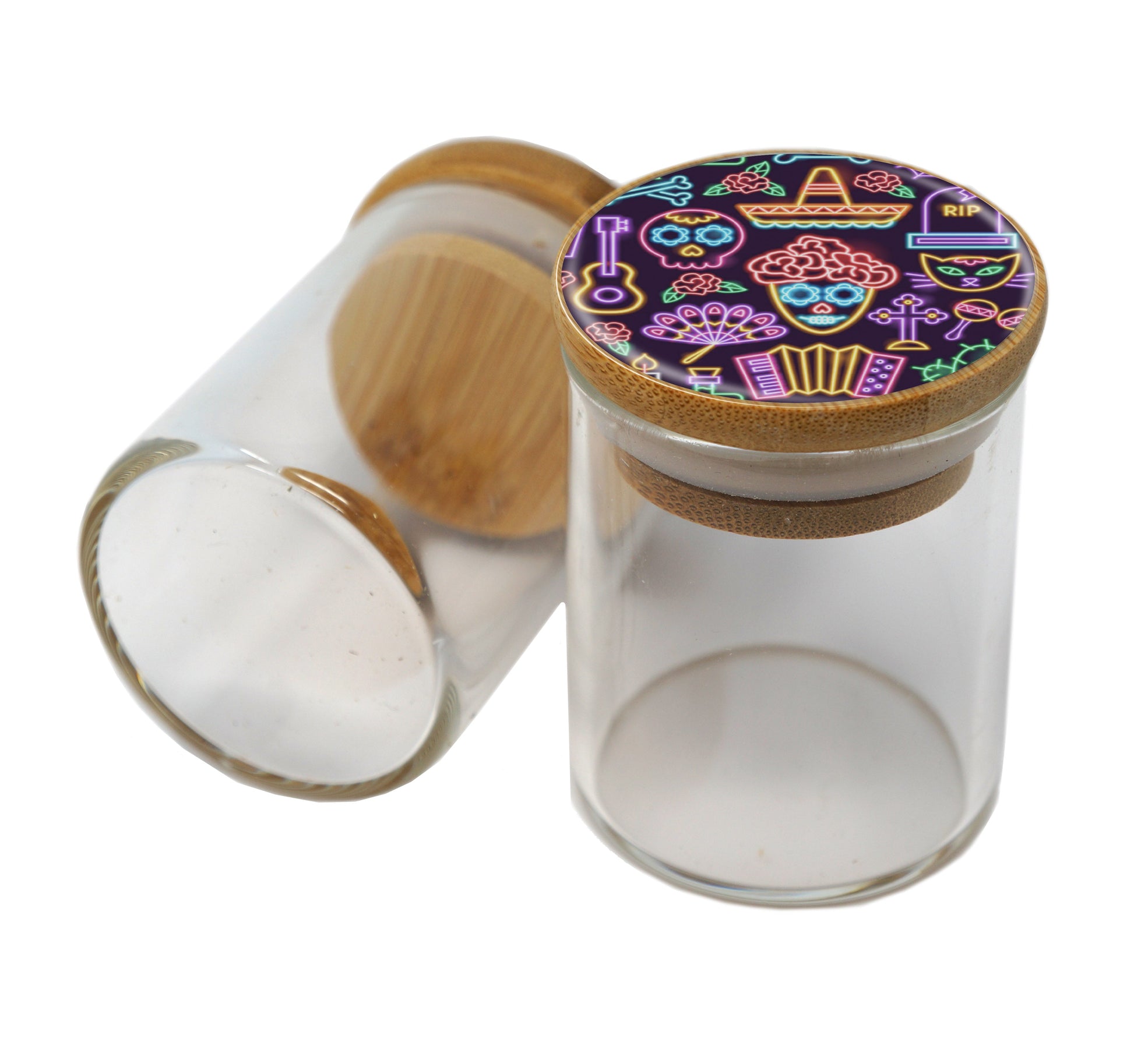 Bamboo Lid Glass Jar Container With Design #BS-064