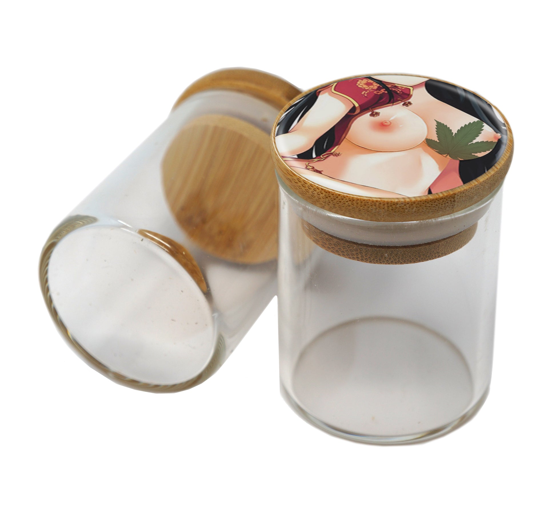Bamboo Lid Glass Jar Container With Design #BS-067