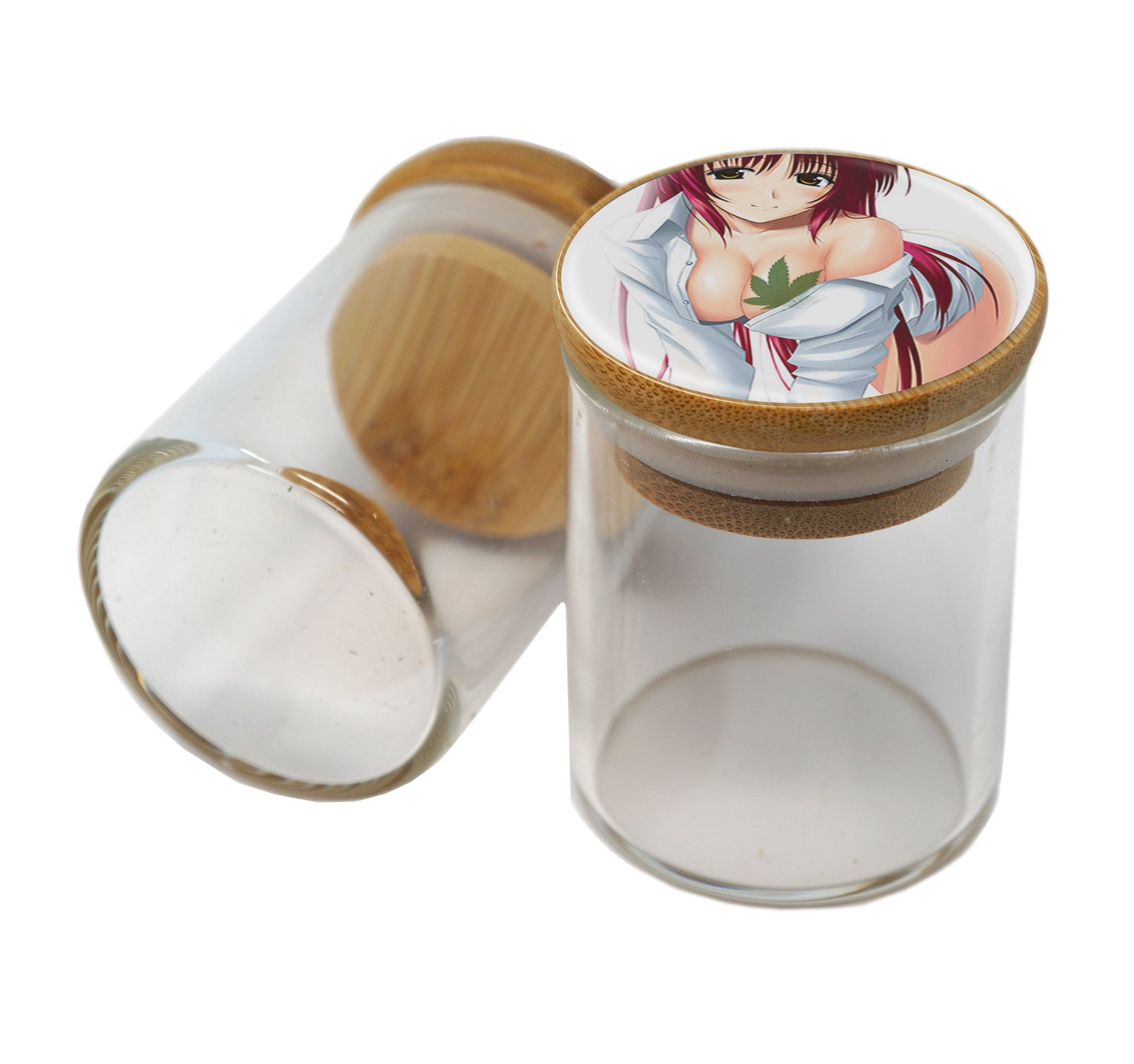 Bamboo Lid Glass Jar Container With Design #BS-070