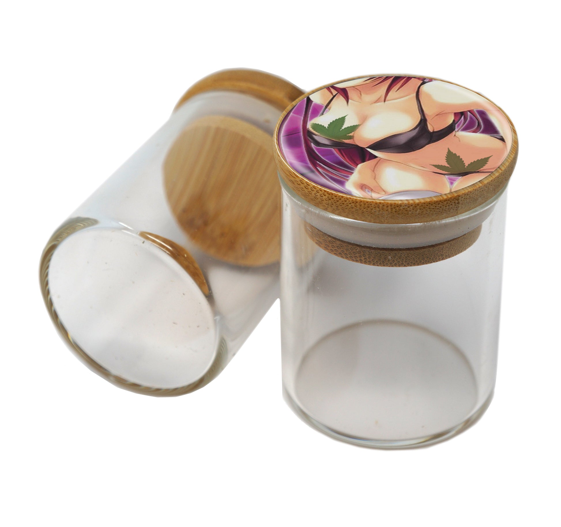 Bamboo Lid Glass Jar Container With Design #BS-071