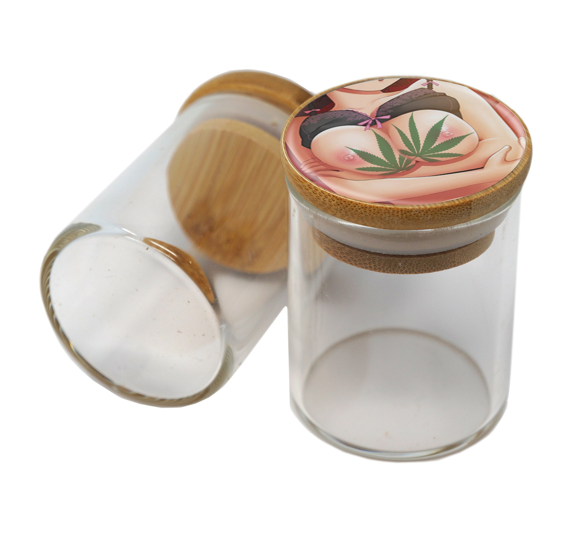 Bamboo Lid Glass Jar Container With Design #BS-072