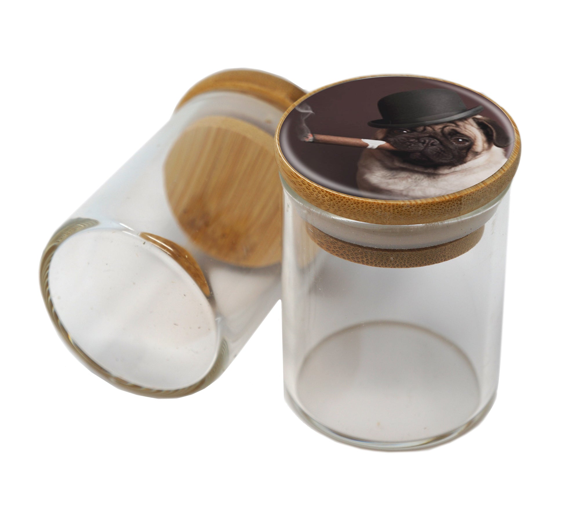 Bamboo Lid Glass Jar Container With Design #BS-073