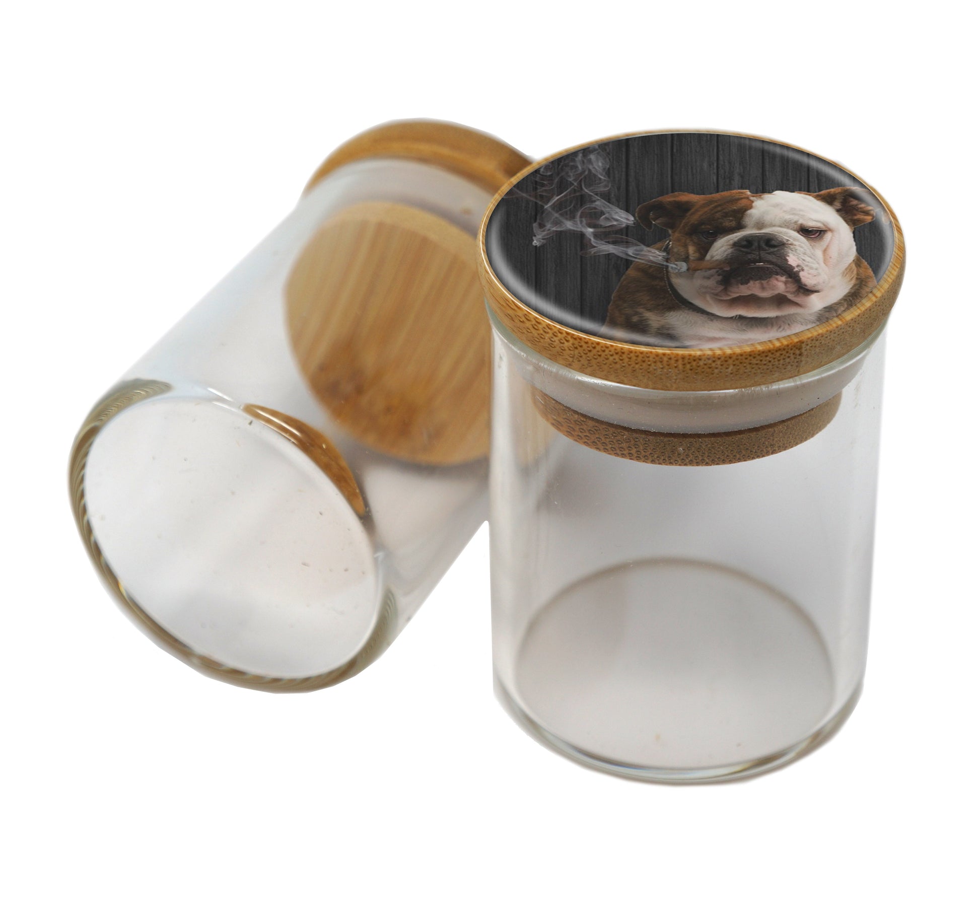 Bamboo Lid Glass Jar Container With Design #BS-074