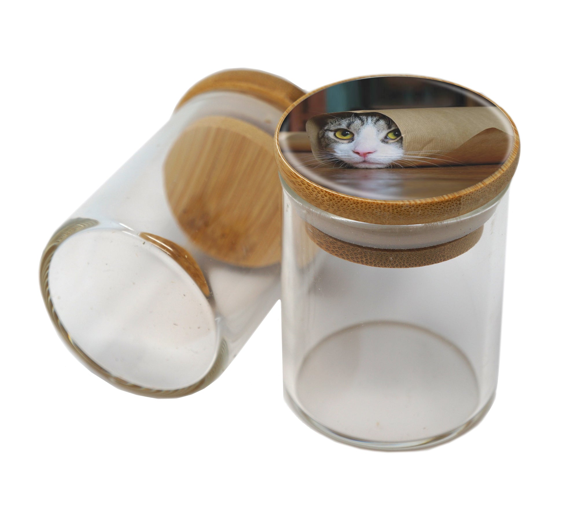 Bamboo Lid Glass Jar Container With Design #BS-076