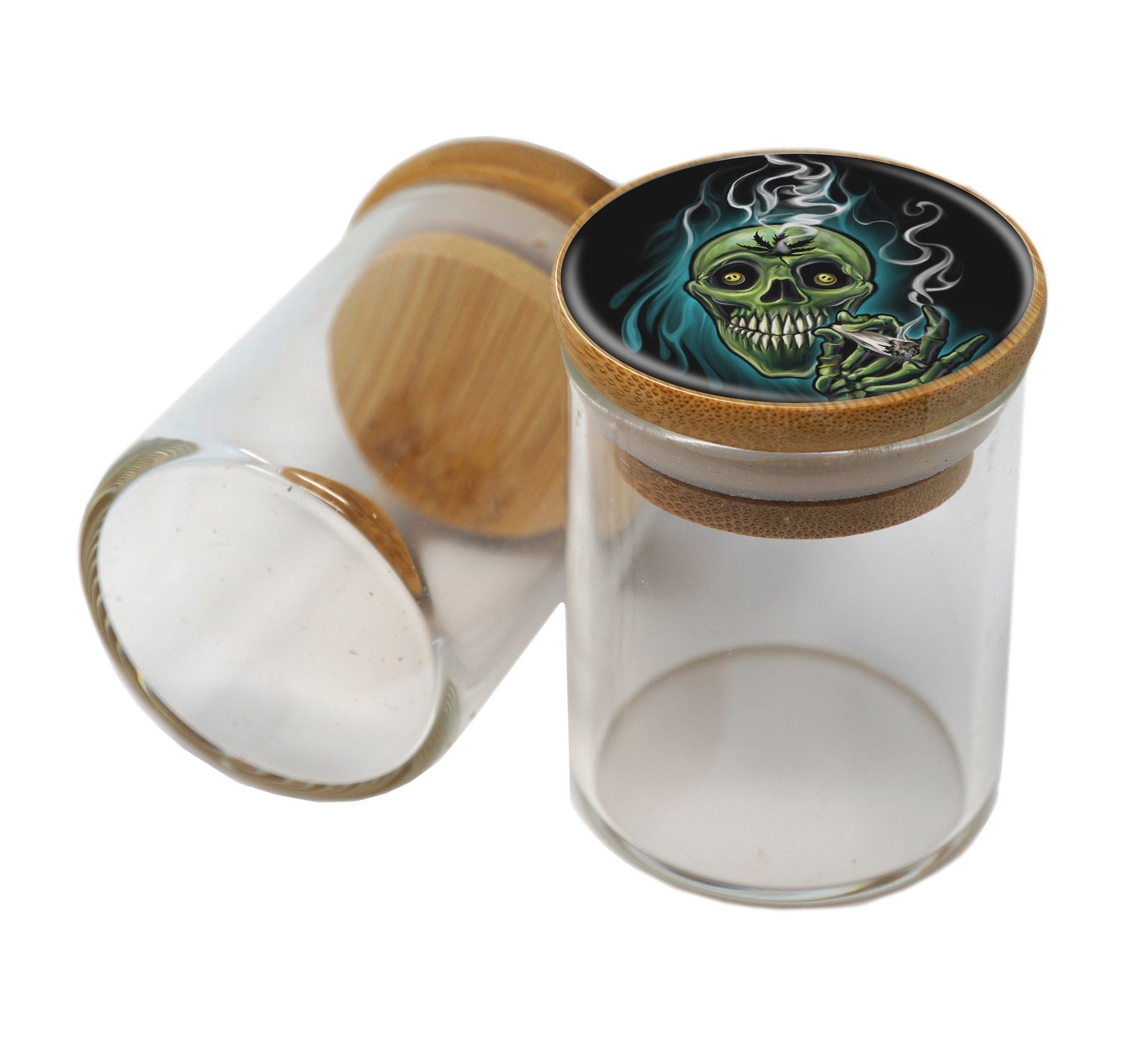 Bamboo Lid Glass Jar Container With Design #BS-084