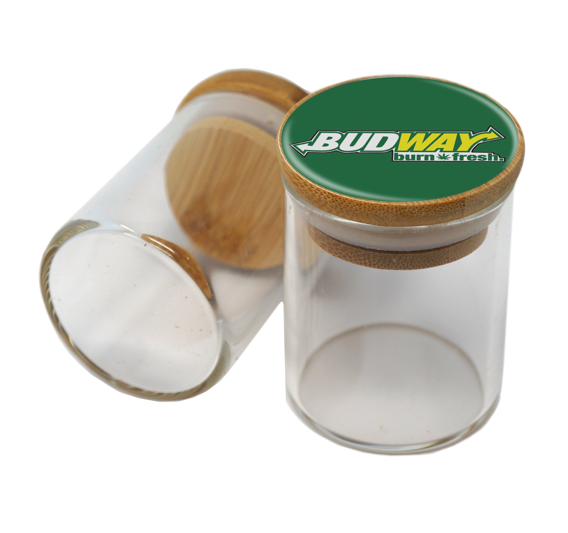 Bamboo Lid Glass Jar Container With Design #BS-092