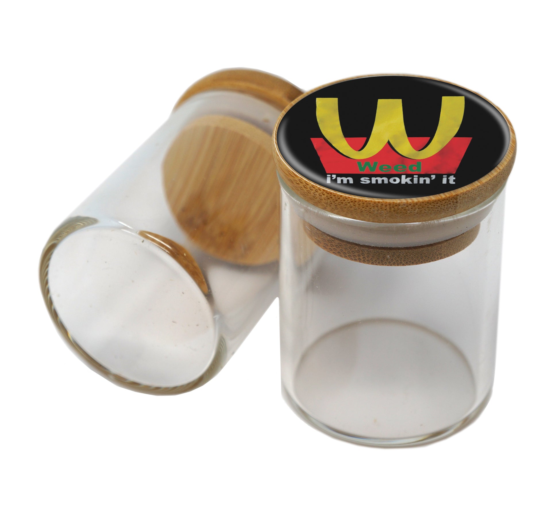 Bamboo Lid Glass Jar Container With Design #BS-096