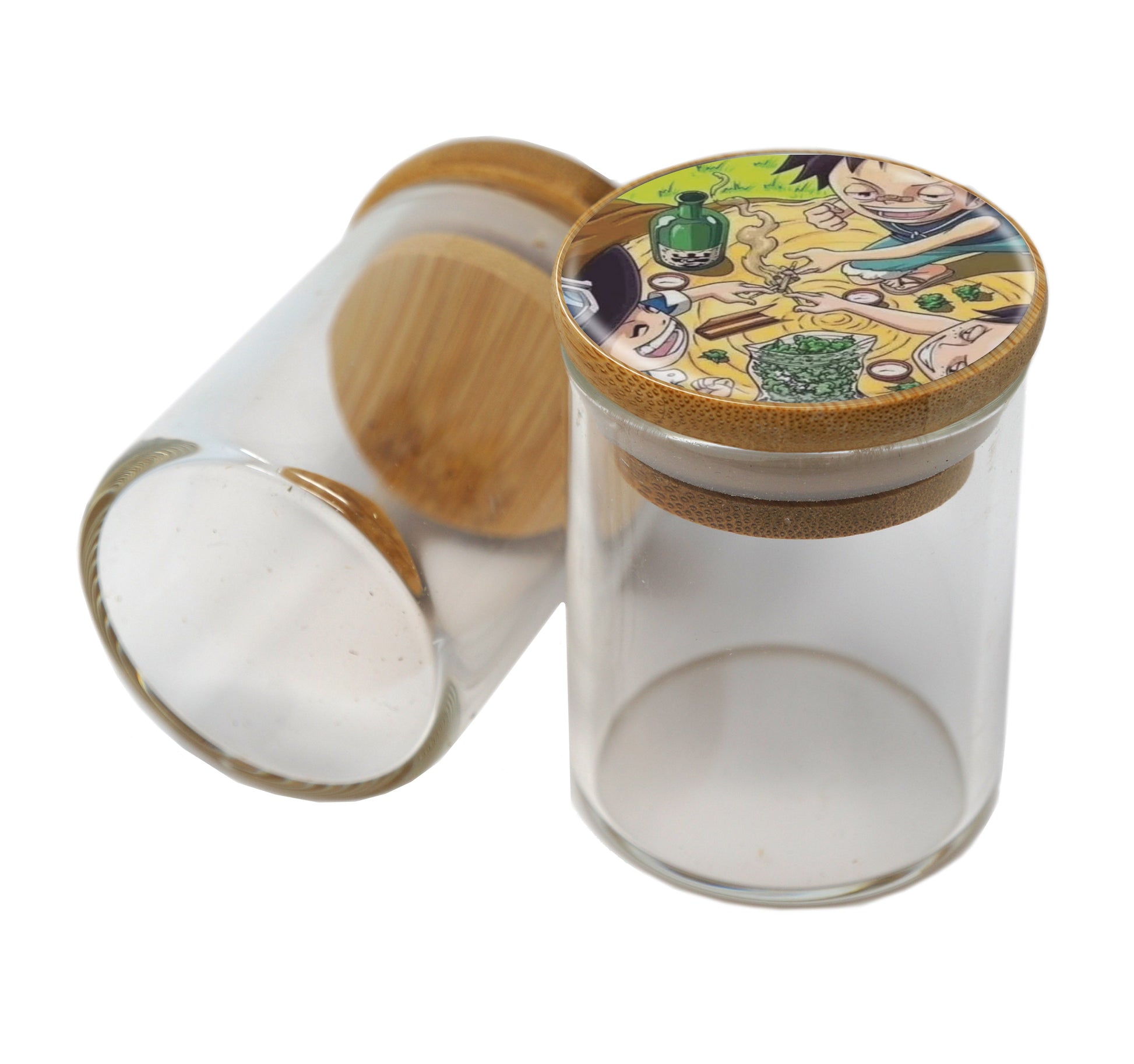Bamboo Lid Glass Jar Container With Design #BS-097