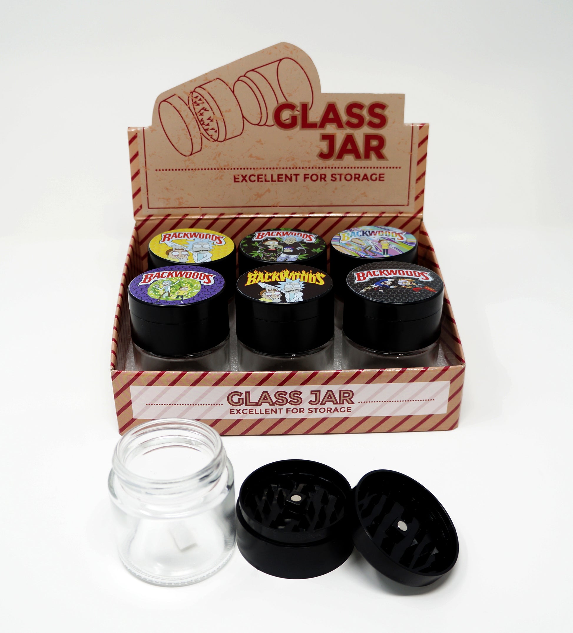 Glass Storage Jar with Grinder Top - Childproof screw closure - 3 piece Magnetic