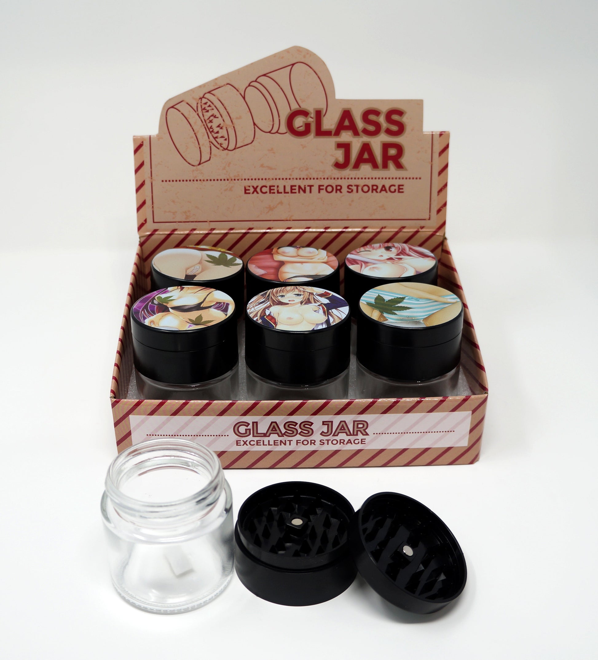 Glass Storage Jar with Grinder Top - Childproof screw closure - 3 piece Magnetic